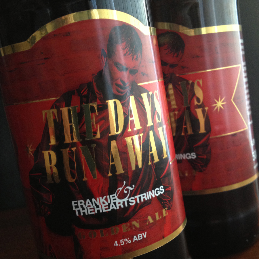 Bottle label design for Frankie and The Heartstrings' 'The Days Run Away' golden ale. Specially brewed for the band by the Maxim Brewery to coincide with the release of their second album, of the same name. Detailing and colour scheme were inspired by vintage Vaux beer labels and artwork features the album's cover photo (by Paul Alexander Knox).