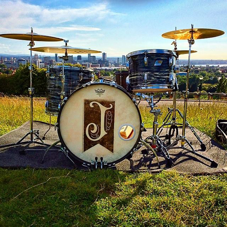 Liverpool band The Jackobins putting their logo to good use in a recent video shoot.