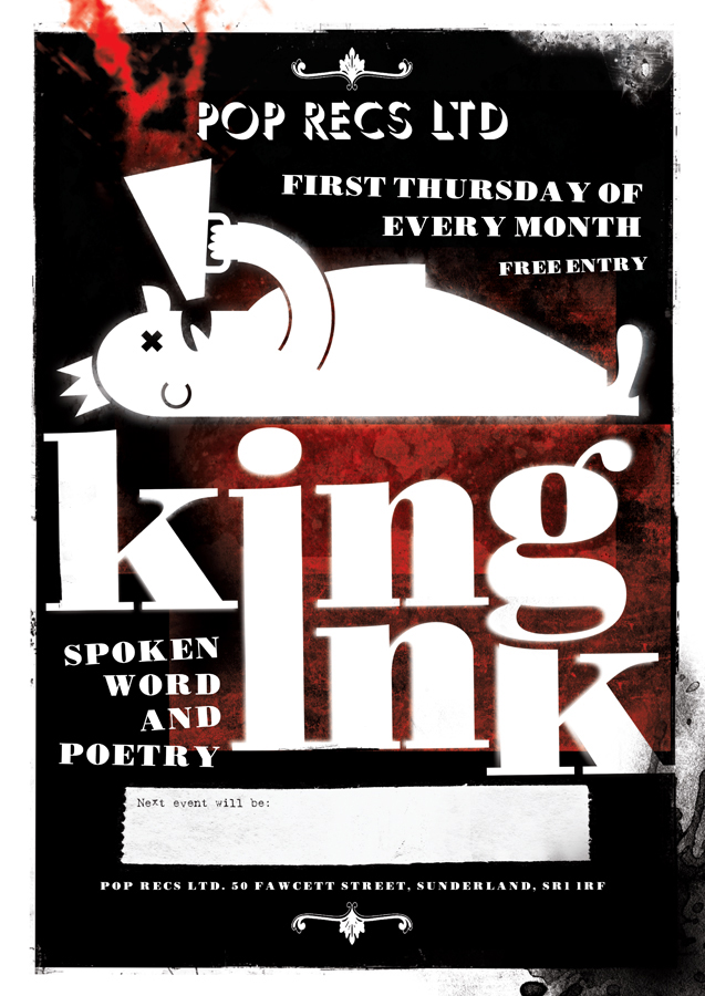 Poster design for Pop Recs Ltd's monthly spoken word and poetry evening 'King Ink'.