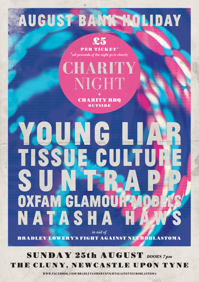 Poster design for August Bank Holiday charity gig at The Cluny, Newcastle.