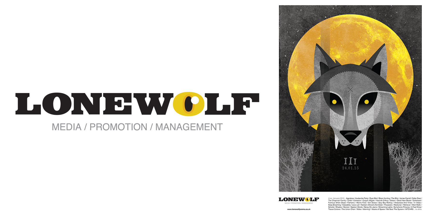 Brand identity and illustrated limited edition print for North East England based media, promotion and management company, Lone Wolf Promotions.